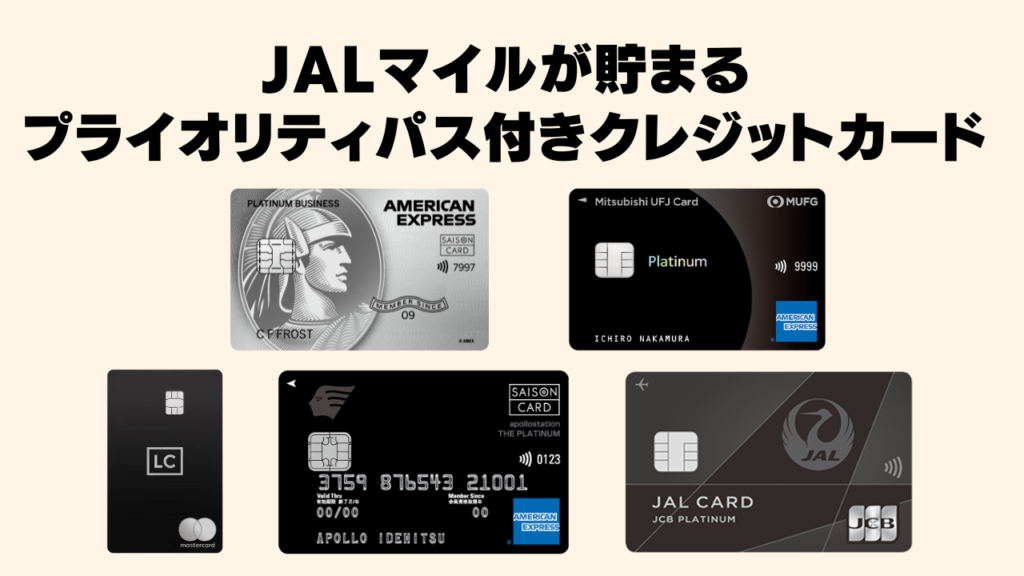 ここでは、JALマイルを貯めやすいプライオリティパス付きクレジットカードについてご紹介します。