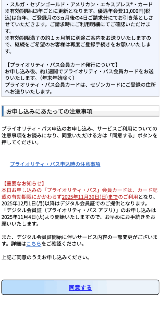 なお、2025年11月4日以降はデジタルカードの発行に仕様が以降するため、カード申し込み後、即日プライオリティパスの利用も可能になります。
