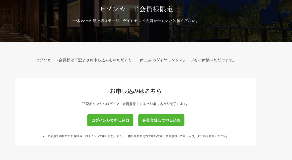 セゾンプラチナビジネスアメックスカードで外せない特典が一休.comダイヤモンド会員(6ヶ月無料)といったホテル関連の特典。