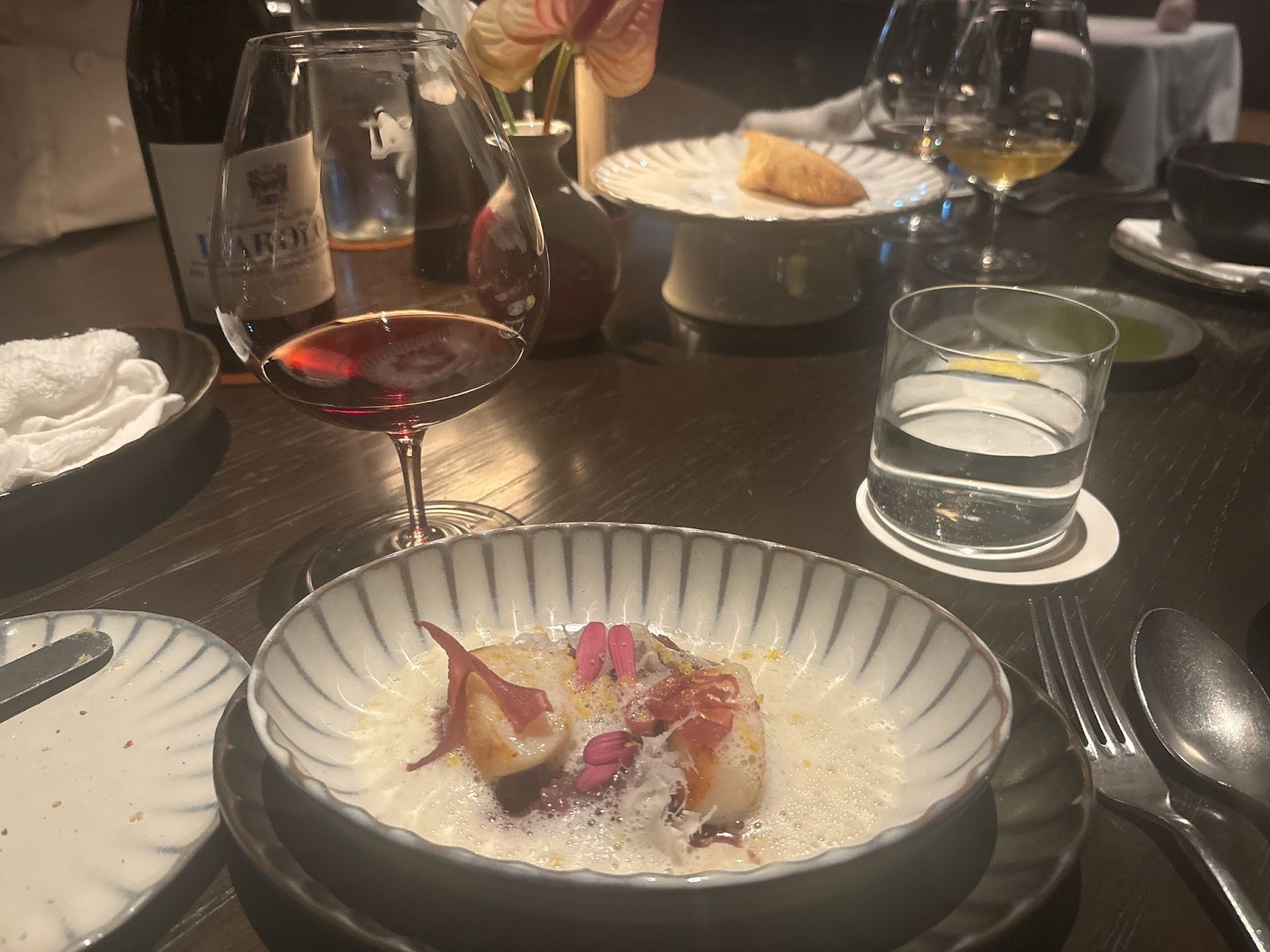帆立やカラスミを合わせた香り高い一皿です。