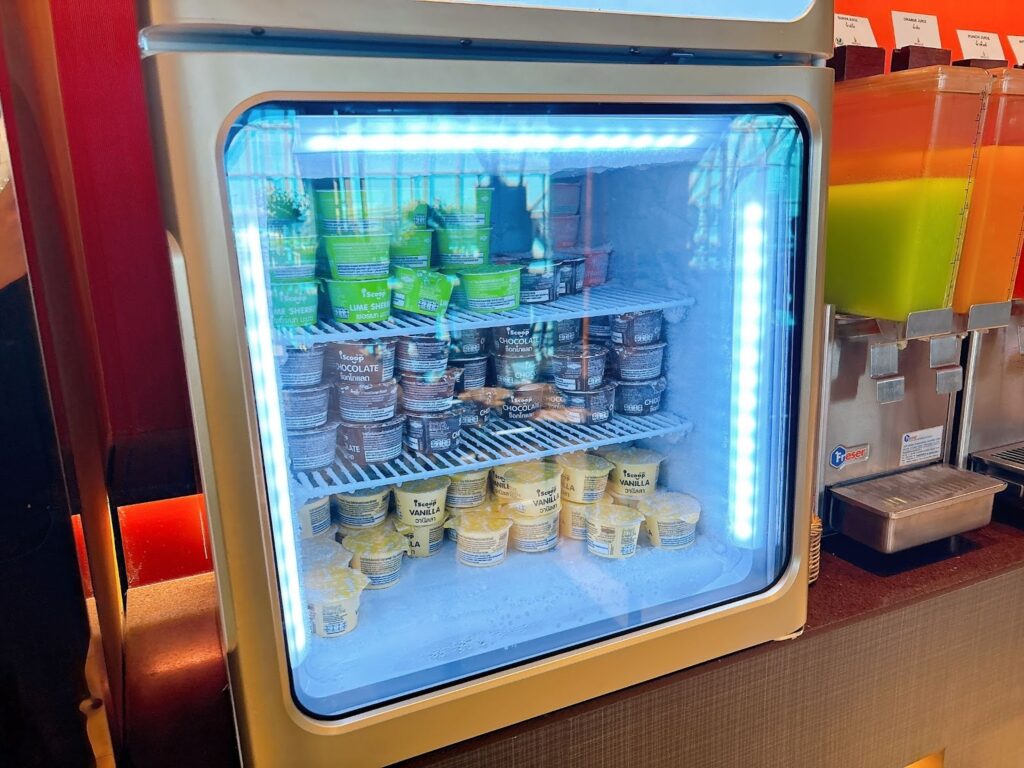 ストロベリー、バニラ、チョコなどの定番に加えて、ライムという日本ではあまり見かけないフレーバーもあったのが印象的でした。