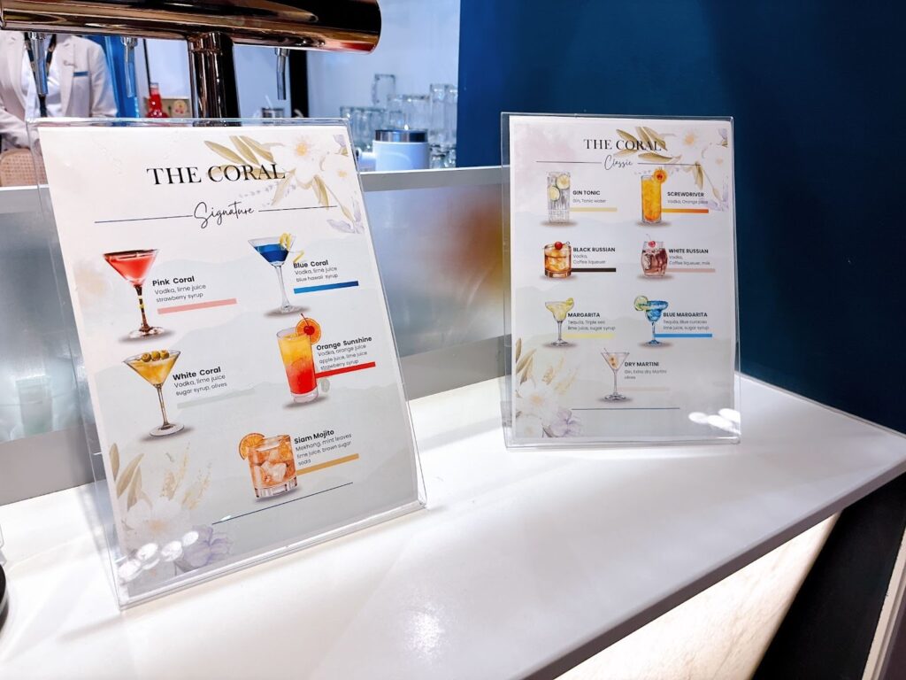 きれいなシャワールームで気持ちよくリフレッシュできたので、次はコーラルラウンジに行ってみましょう!