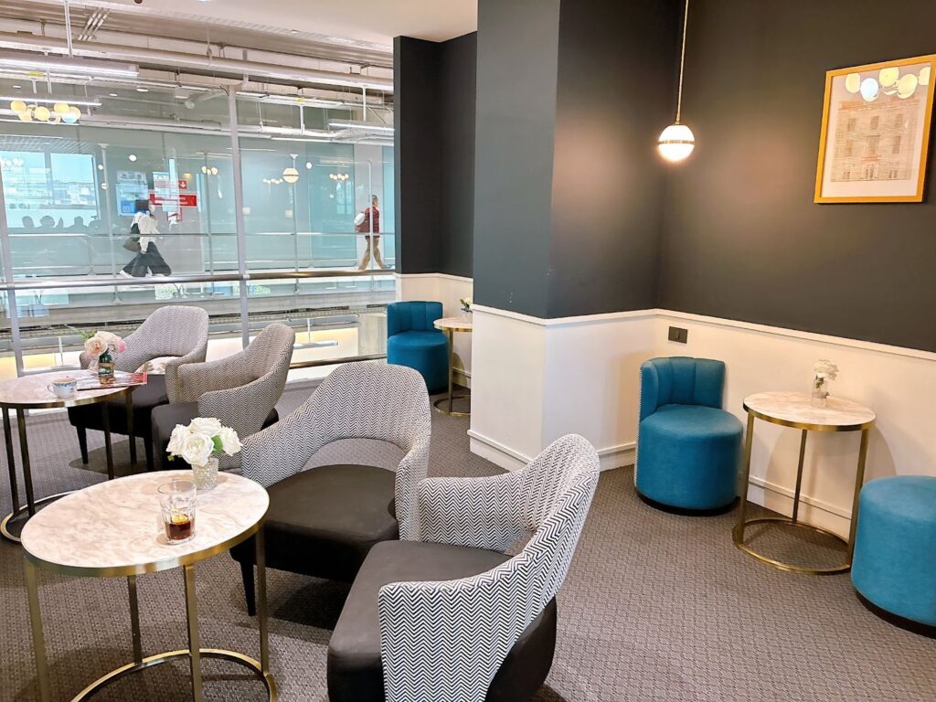 こちらは、軽食やドリンクに加え、シャワールームやベッドルームもあるハイクラスなラウンジです。