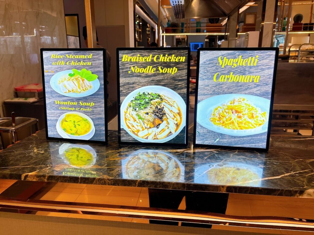 こちらでは、カルボナーラやチキンヌードルスープなど、できたての料理を注文できます。